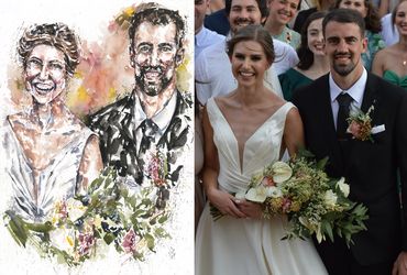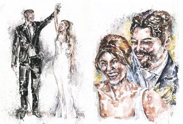 A moment in your wedding, painted LIVE with watercolour. The first kiss, walking down the aisle, or the chapel exit.